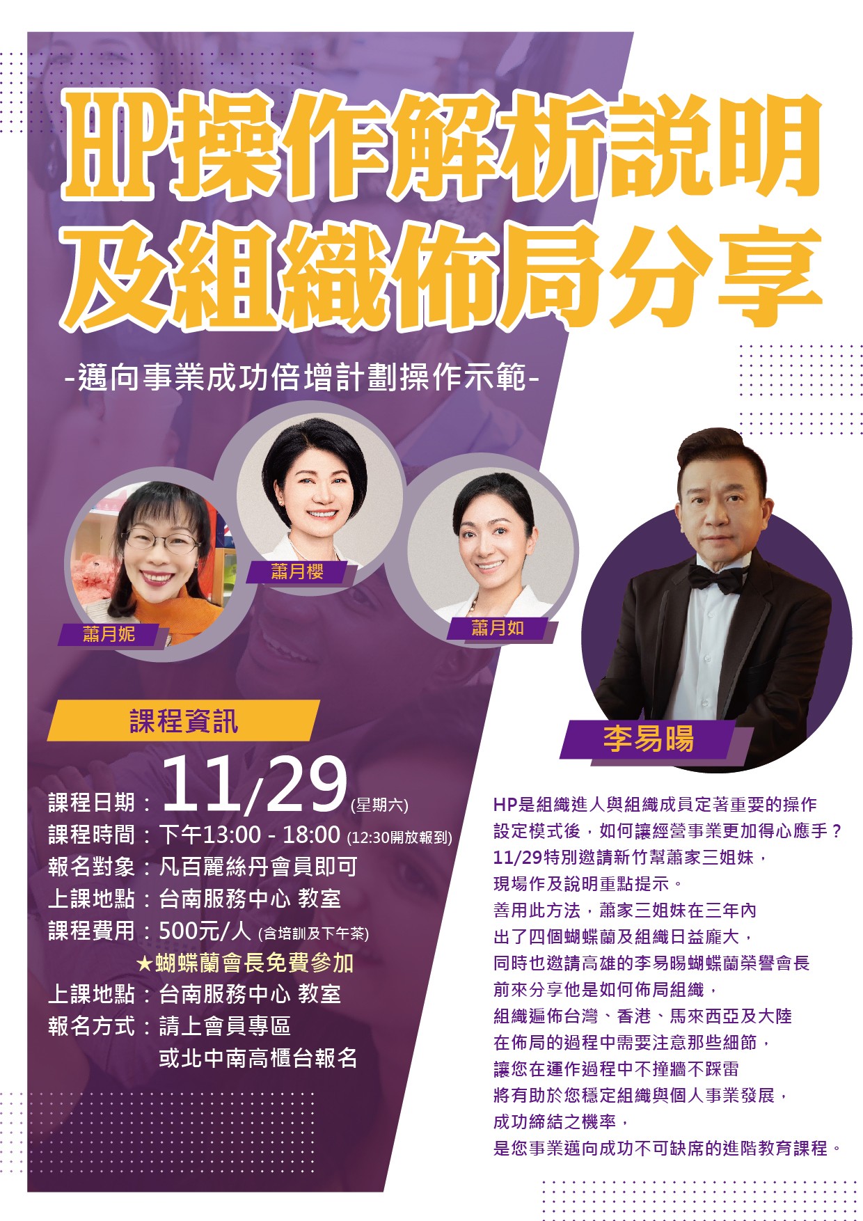 特別邀請新竹幫蕭家三姐妹,現場作及說明重點提示,