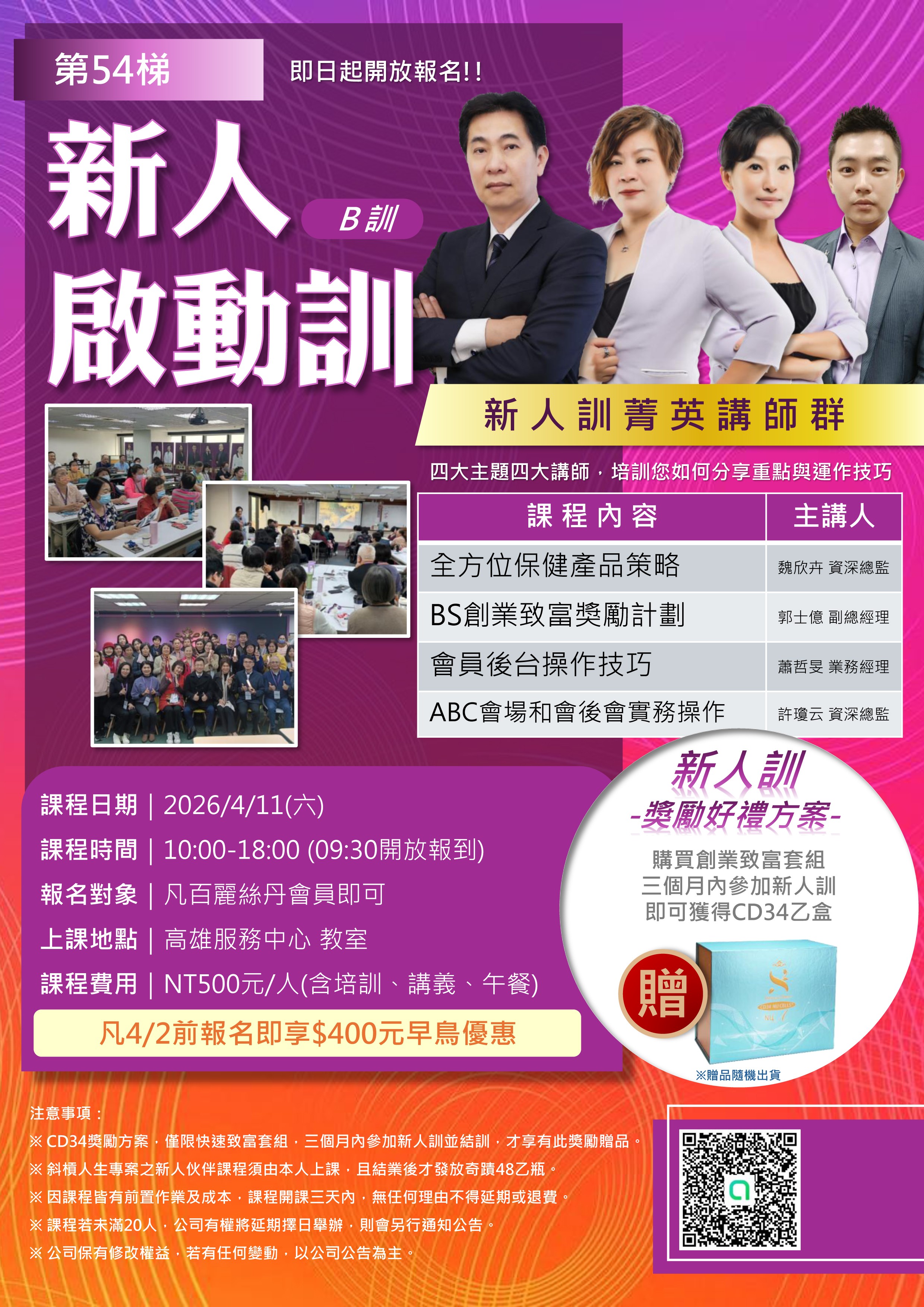 ※ CD34獎勵方案,僅限快速致富套組,三個月內參加新人訓並結訓,才享有此獎勵贈品。