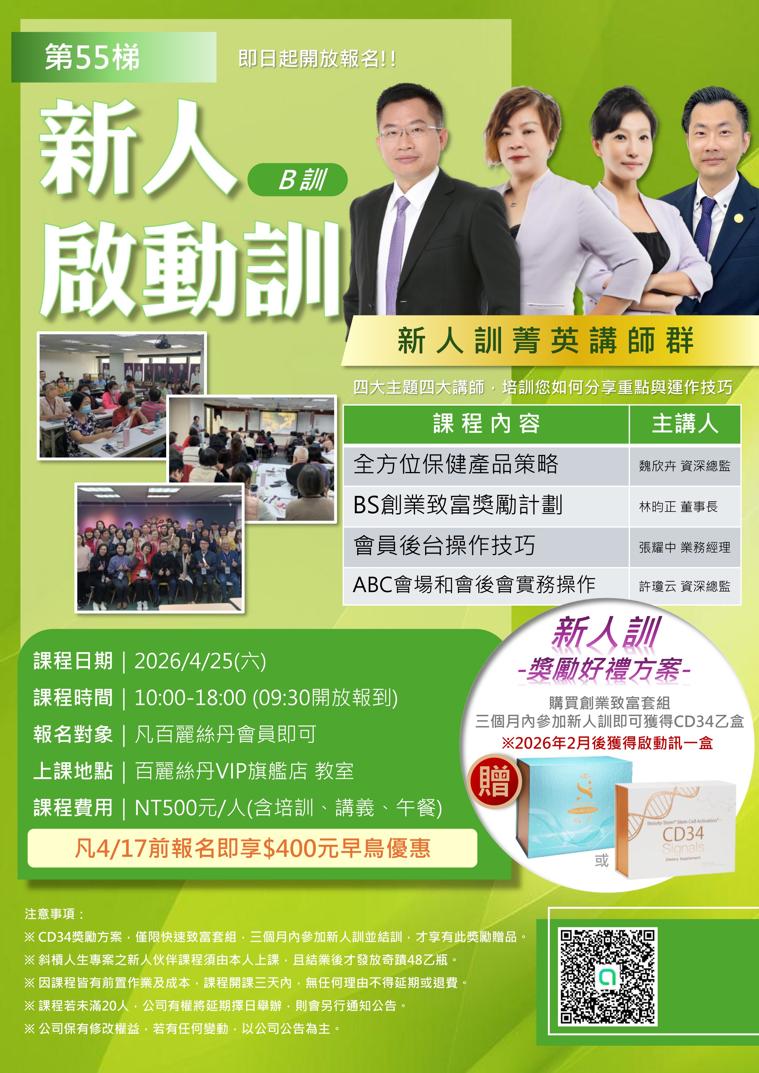 ※ CD34獎勵方案,僅限快速致富套組,三個月內參加新人訓並結訓,才享有此獎勵贈品。