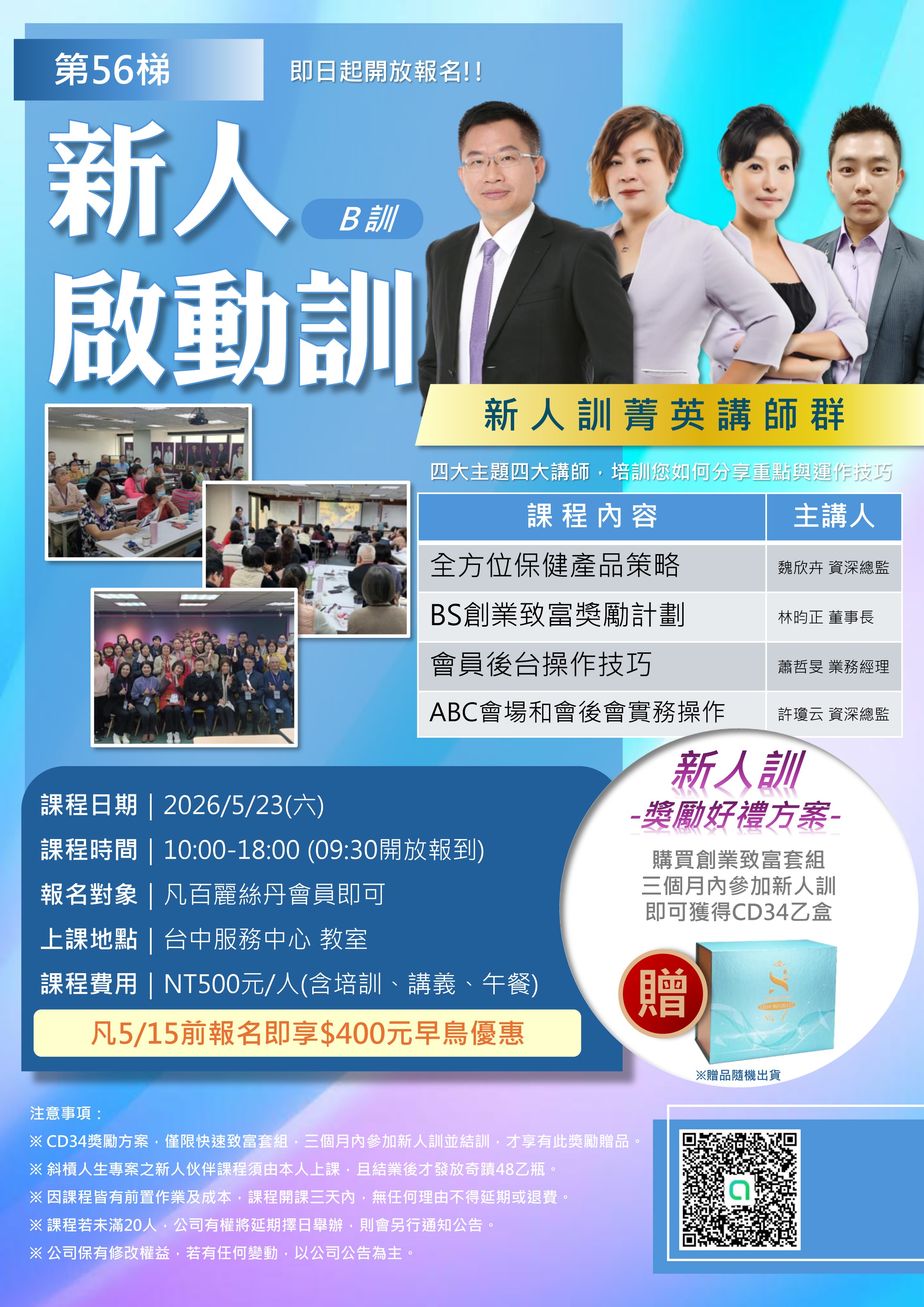 ※ CD34獎勵方案,僅限快速致富套組,三個月內參加新人訓並結訓,才享有此獎勵贈品。