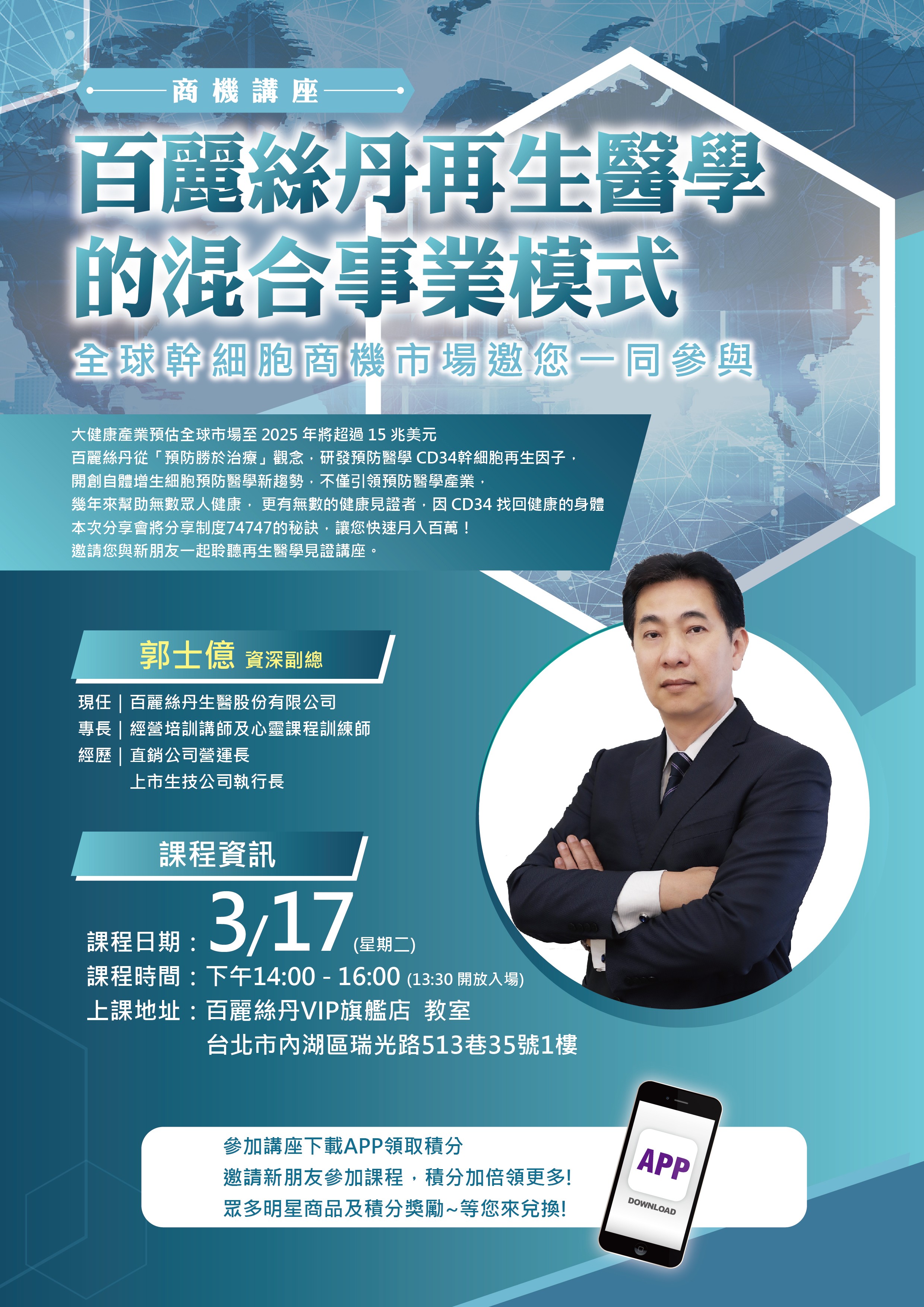 台北場 3/17(二) 百麗絲丹VIP旗艦店 教室