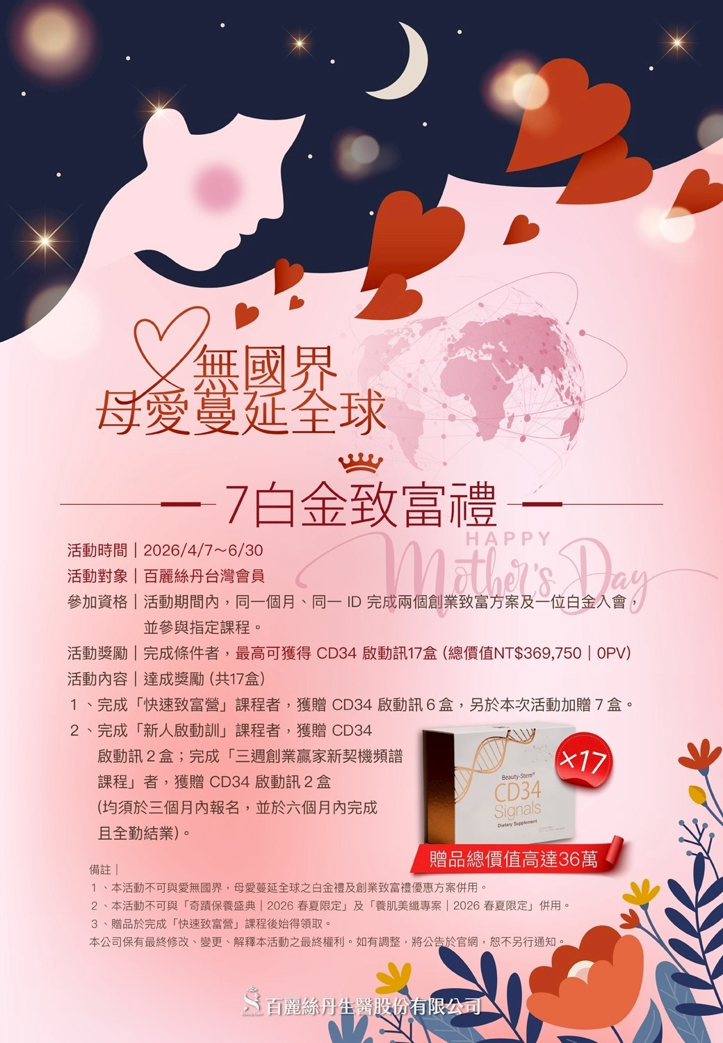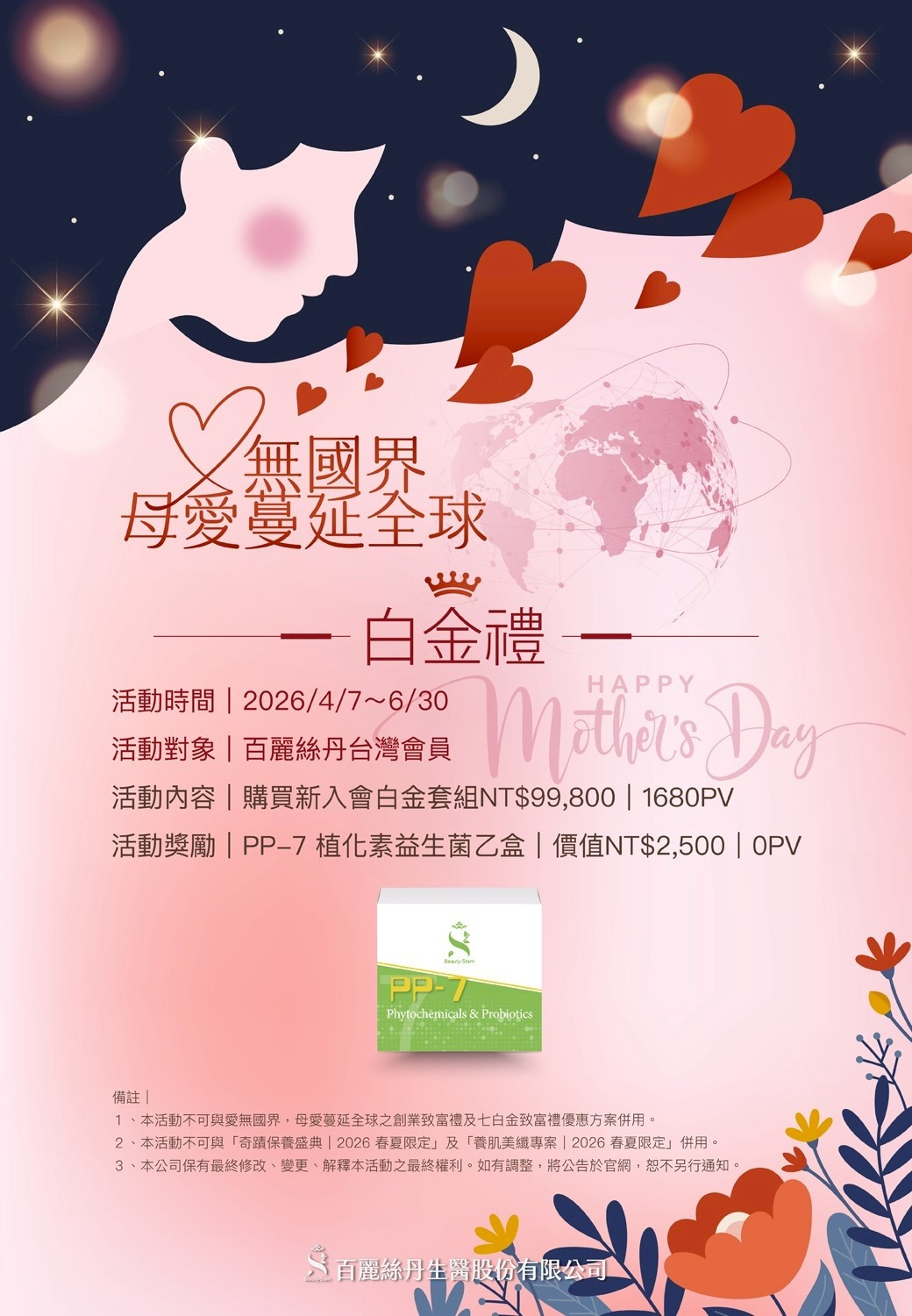 - 活動獎勵: PP-7 植化素益生菌乙盒(價值 NT$2,500 | 0PV)