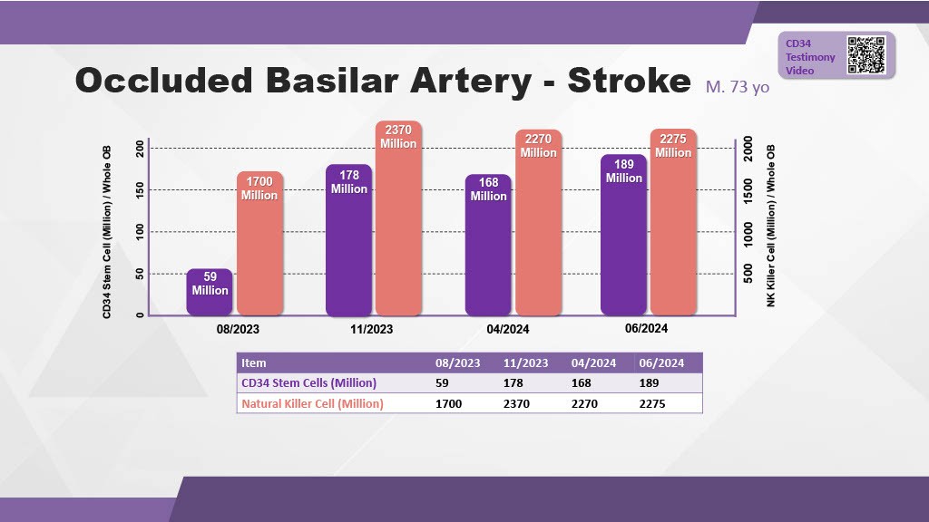 Yes. The specific growth factors in CD34 Nu-Signals® can cross the blood-brain barrier to support neurogenesis (nerve repair). Documented case studies of Stroke and Parkinson’s patients have shown measurable recovery, including the physical rebuilding of brain vessels visible on MRI scans and the restoration of motor skills and speech.