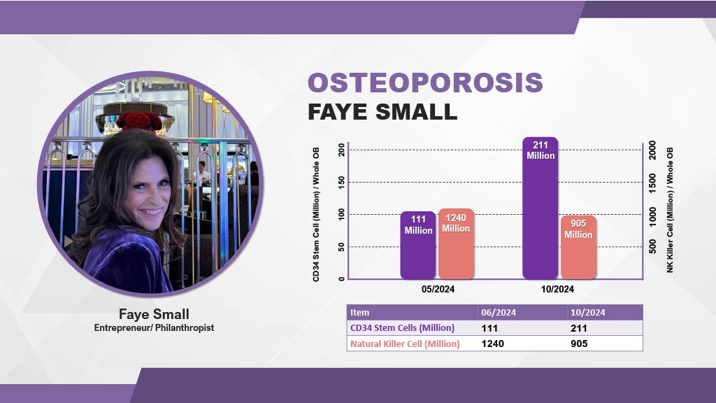 Mobilizing stem cells is critical for connective tissue repair. Clinical observations of patients with Osteoporosis have shown improved Bone Mineral Density (BMD), with T-scores moving from "Osteoporosis" toward normal ranges. Users with severe joint degeneration (such as herniated discs) have also reported natural cartilage regeneration, often avoiding surgery.