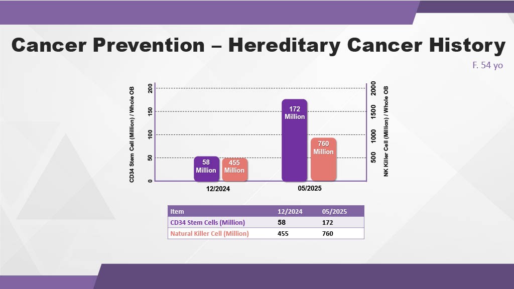 Figure 16: Significant proliferation of the body's natural defense cells (CD34+ and NK cells) supporting cancer prevention.