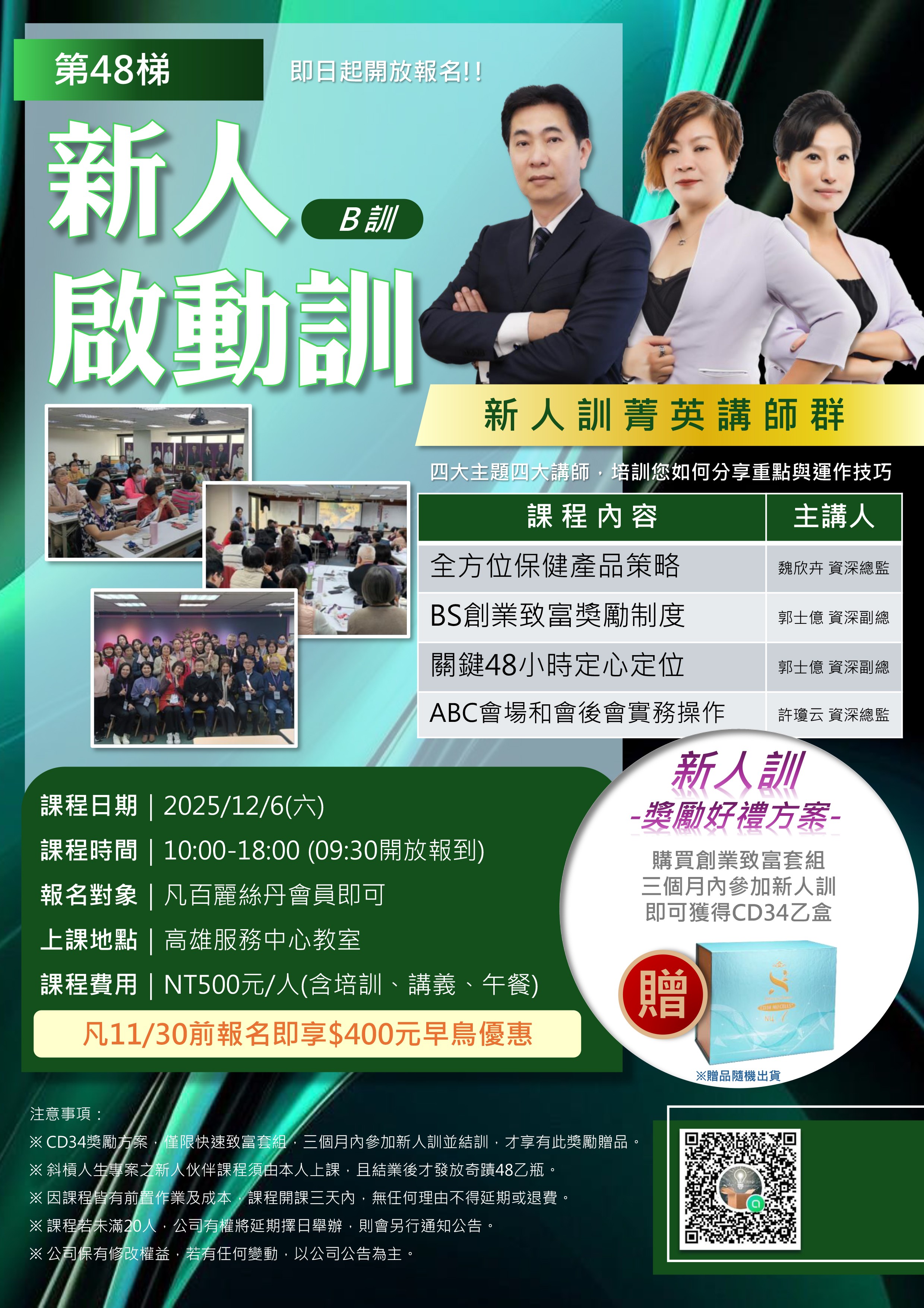 報名參加新人啟動訓,就是啟動您的BS連鎖事業的開始,淺顯易懂系統化教學,點燃您開創事業的心,