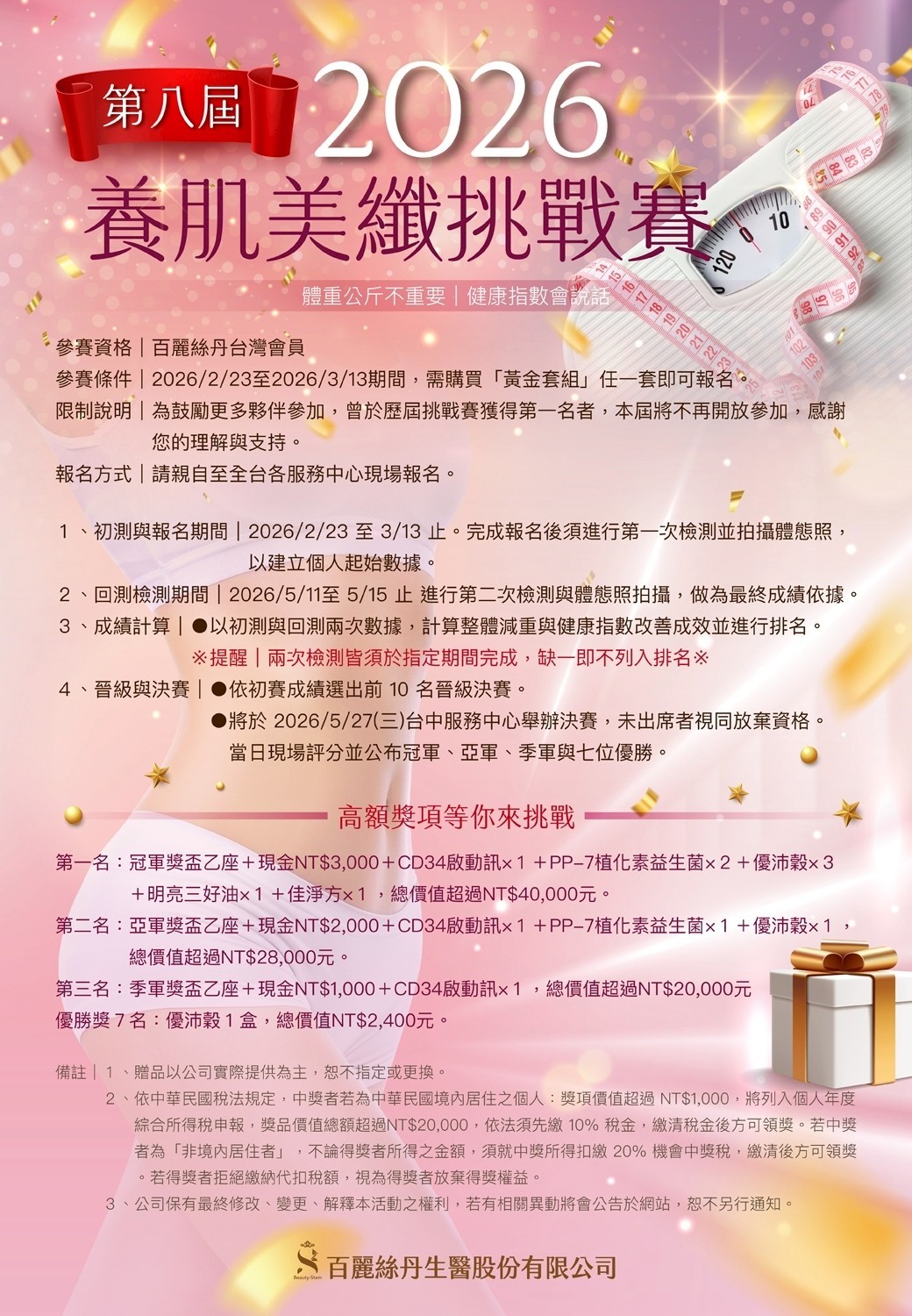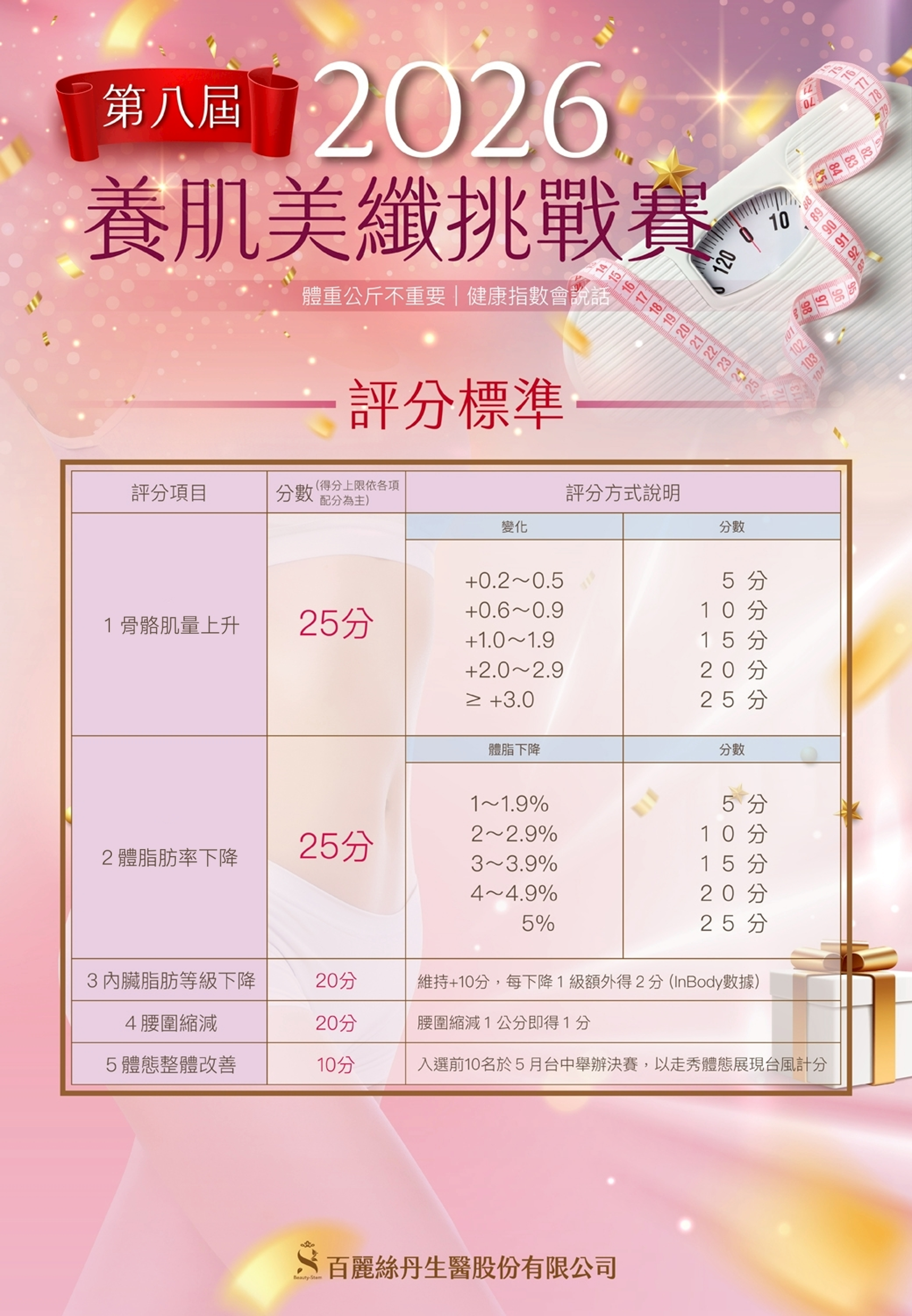 2.回測檢測期間:2026/5/11 至 5/15 止 進行第二次檢測與體態照拍攝,做為最終成績依據。