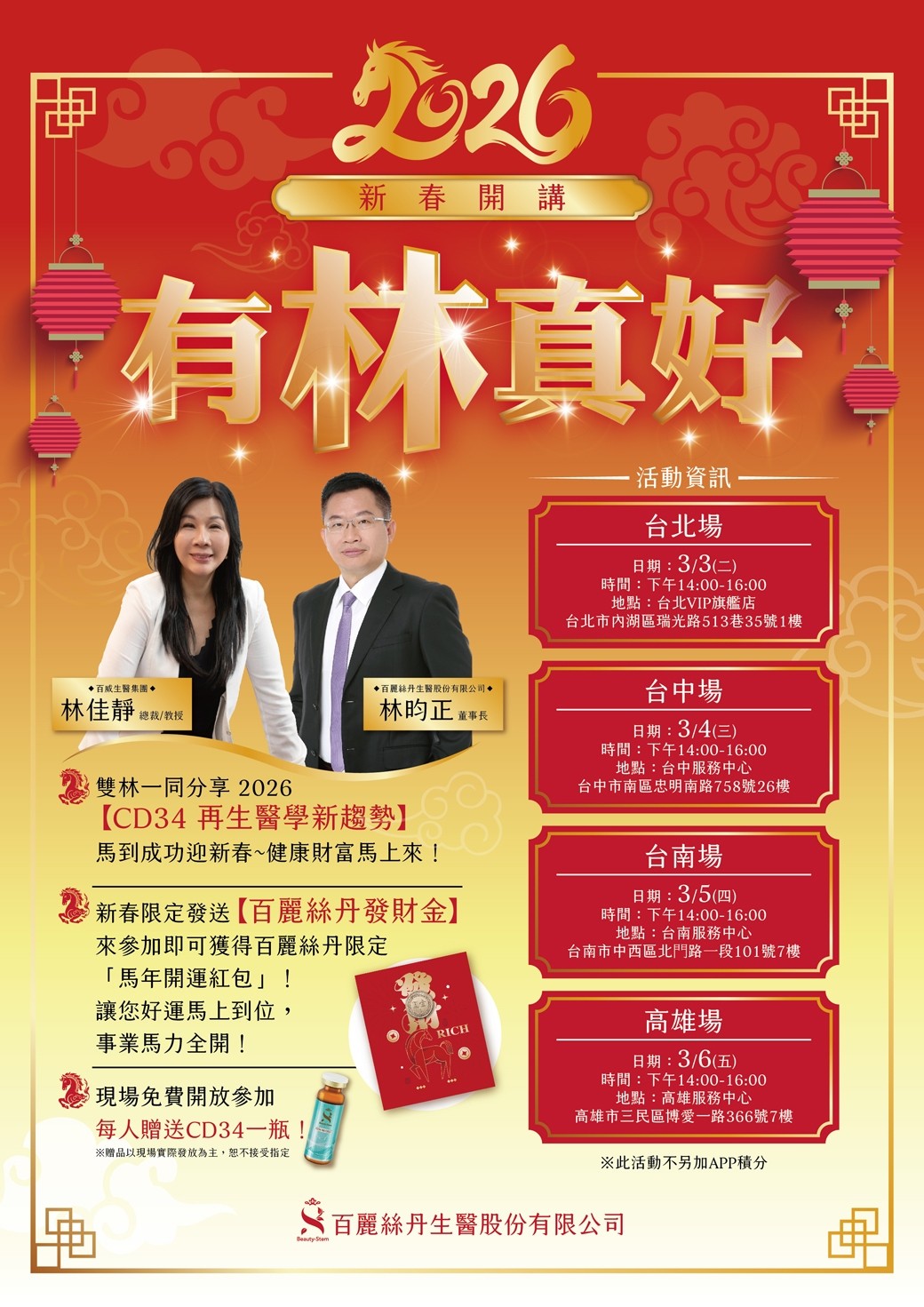 主題 :【CD34 再生醫學新趨勢】馬到成功迎新春,健康財富馬上來!