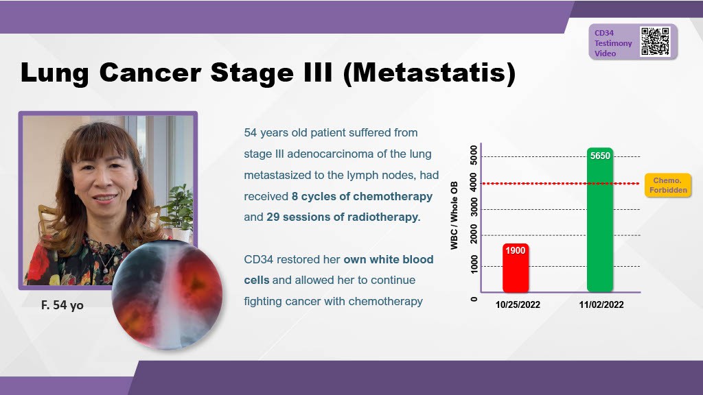 Figure 17: Rapid restoration of White Blood Cells allowed this Stage III Lung Cancer patient to continue chemotherapy.
