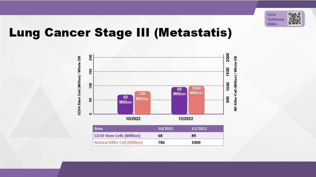 Figure 16: Significant proliferation of the body's natural defense cells (CD34+ and NK cells) supporting cancer prevention.